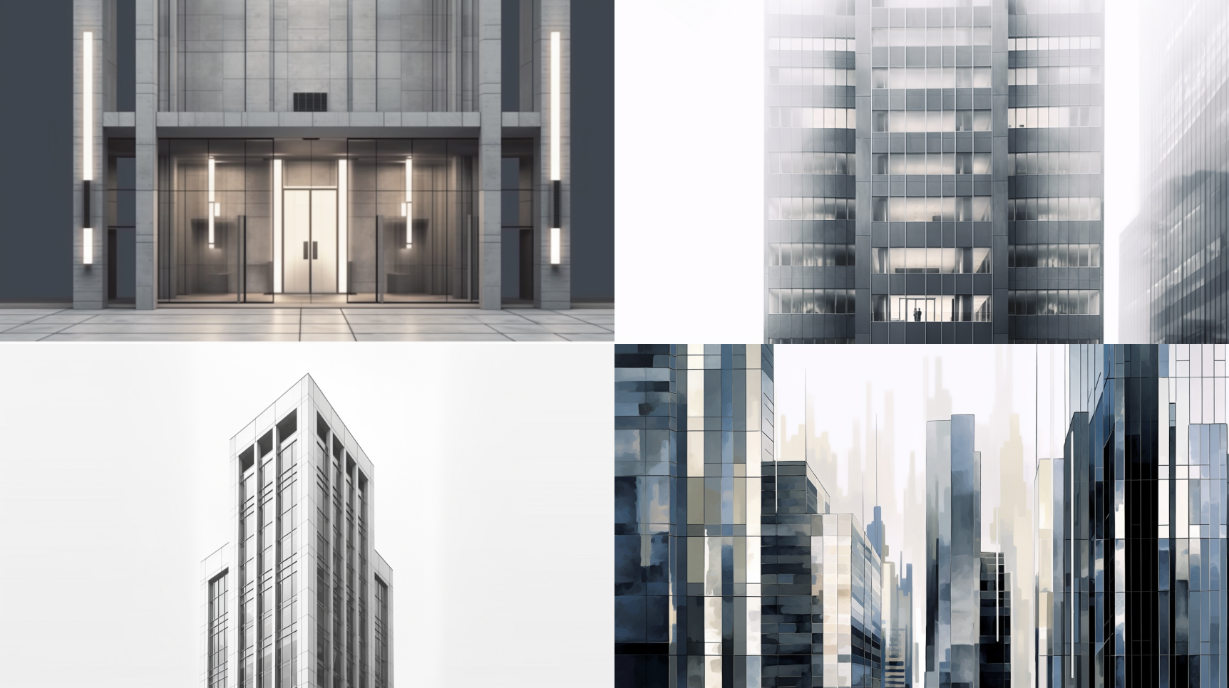 A sleek and minimalist skyscraper, medium: digital painting, style: inspired by the artwork in Ludwig Mies van der Rohe's iconic designs, lighting: clean and even lighting accentuating the building's geometric forms, colors: a monochromatic palette of whites, grays, and metallic accents, composition: showcasing the building's clean lines, glass façade, and the sense of verticality and modernity it exudes. --ar 16:9 --v 5.1 --style raw --q 2 --s 750A minimalist living room, medium: digital painting, style: reminiscent of the artwork in Le Corbusier's functionalist designs, lighting: soft, diffused natural light creating a serene atmosphere, colors: a combination of neutral tones and pops of vibrant colors in furniture and artwork, composition: highlighting the open floor plan, clean lines, and the sense of openness and simplicity that defines modernist interiors. --ar 16:9 --v 5.1 --style raw --q 2 --s 750An abstract geometric painting, medium: digital painting, style: inspired by the artwork of Piet Mondrian and Kazimir Malevich, colors: a bold and contrasting palette of primary colors and geometric shapes, composition: focusing on the interplay of lines, shapes, and colors to create a dynamic and visually engaging modernist artwork. --ar 16:9 --v 5.1 --style raw --q 2 --s 750A modular and sustainable housing complex, medium: digital painting, style: reminiscent of the artwork in Walter Gropius' Bauhaus architecture, lighting: soft, natural light highlighting the clean lines and functional design, colors: a mix of neutral tones and pops of color in communal spaces, composition: showcasing the innovative use of modular elements, efficient floor plans, and the integration of green spaces in a modernist residential building. --ar 16:9 --v 5.1 --style raw --q 2 --s 750A glass and steel corporate headquarters, medium: digital painting, style: inspired by the artwork in Skidmore, Owings & Merrill's contemporary designs, lighting: natural light reflecting off the glass façade, colors: a combination of sleek metallic surfaces and transparent glass against a contrasting backdrop, composition: highlighting the building's geometric forms, clean lines, and the sense of transparency and efficiency associated with modernist office spaces. --ar 16:9 --v 5.1 --style raw --q 2 --s 750A minimalist and sculptural garden, medium: digital painting, style: reminiscent of the artwork in Roberto Burle Marx's landscape designs, lighting: soft, natural light illuminating the garden's features, colors: a limited palette of greens and contrasting hues, composition: focusing on the interplay of geometric forms, clean lines, and the integration of natural elements to create a serene and harmonious modernist landscape. --ar 16:9 --v 5.1 --style raw --q 2 --s 750A functional and efficient factory, medium: digital painting, style: inspired by the artwork in Albert Kahn's industrial architecture, lighting: even and bright lighting emphasizing the building's utilitarian features, colors: a combination of clean whites and neutral tones against a solid backdrop, composition: highlighting the building's streamlined design, modular elements, and the sense of efficiency and productivity that characterizes modernist industrial architecture. --ar 16:9 --v 5.1 --style raw --q 2 --s 750A contemporary art museum, medium: digital painting, style: reminiscent of the artwork in Frank Gehry's iconic designs, lighting: dynamic and dramatic lighting accentuating the building's sculptural forms, colors: a mix of metallic surfaces, bold accents, and contrasting tones, composition: showcasing the museum's avant-garde architecture, open spaces, and the integration of contemporary art in a modernist cultural institution. --ar 16:9 --v 5.1 --style raw --q 2 --s 750A twisted and dynamic tower, medium: digital painting, style: inspired by the artwork in Santiago Calatrava's futuristic designs, lighting: dramatic lighting highlighting the tower's unique form and structural elements, colors: a combination of sleek metallic surfaces and glass against a contrasting backdrop, composition: showcasing the tower's innovative and sculptural design, capturing its visual impact and the sense of movement it conveys. --ar 16:9 --v 5.1 --style raw --q 2 --s 750A futuristic and efficient subway station, medium: digital painting, style: reminiscent of the artwork in Norman Foster's transportation designs, lighting: bright and functional lighting emphasizing the station's sleek features, colors: a combination of clean whites, metallic accents, and vibrant pops of color in wayfinding elements, composition: highlighting the station's minimalist design, clear circulation paths, and the sense of connectivity and mobility associated with modernist transportation hubs. --ar 16:9 --v 5.1 --style raw --q 2 --s 750A sustainable and eco-friendly manufacturing facility, medium: digital painting, style: inspired by the artwork in Renzo Piano's industrial designs, lighting: natural light filtering through sustainable building materials, colors: a combination of earthy tones, green accents, and transparent surfaces, composition: showcasing the factory's efficient layout, renewable energy features, and the integration of green spaces and eco-conscious technologies in a modernist industrial setting. --ar 16:9 --v 5.1 --style raw --q 2 --s 750A vertical garden skyscraper, medium: digital painting, style: reminiscent of the artwork in Stefano Boeri's vertical forest designs, lighting: soft and natural lighting accentuating the tower's greenery, colors: a harmonious blend of vibrant greens, earthy tones, and sleek metallic surfaces, composition: highlighting the tower's unique façade covered in lush vegetation, showcasing its innovative approach to urban sustainability and the integration of nature in a modernist residential setting. --ar 16:9 --v 5.1 --style raw --q 2 --s 750A dynamic and interactive exhibition space, medium: digital painting, style: inspired by the artwork in