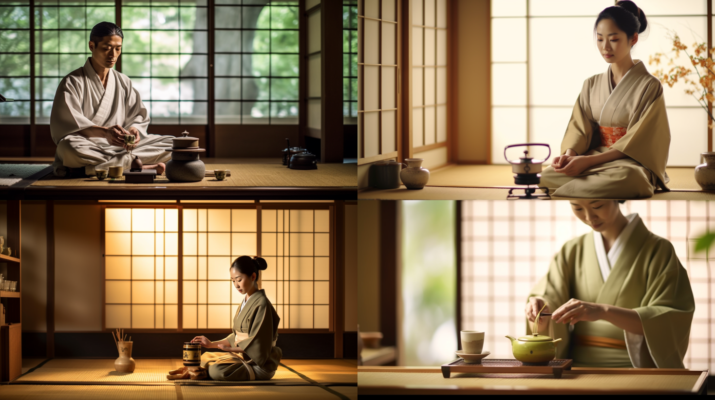 Capture a traditional Japanese tea ceremony. The setting should be serene and minimalist, with a tea master preparing matcha in a tatami room. The lighting should be soft and diffused, creating a calm atmosphere. Use a medium telephoto lens to capture the details of the ceremony. --ar 16:9 --v 5.1 --style raw --q 2 --s 750Depict a Japanese Zen garden. The garden should be tranquil and meticulously maintained, with raked sand, rocks, and sparse vegetation. The lighting should be soft and diffused, creating a peaceful atmosphere. Use a wide-angle lens to capture the entire garden. --ar 16:9 --v 5.1 --style raw --q 2 --s 750Capture a traditional Japanese interior design. The room should be minimalist and functional, with tatami mats, shoji screens, and a low table. The lighting should be soft and diffused, creating a warm and inviting atmosphere. Use a wide-angle lens to capture the entire room. --ar 16:9 --v 5.1 --style raw --q 2 --s 750Depict a Japanese sushi chef at work. The chef should be focused and precise, preparing sushi with fresh ingredients. The lighting should be bright and clear, highlighting the colors and textures of the sushi. Use a medium telephoto lens to capture the chef and sushi. --ar 16:9 --v 5.1 --style raw --q 2 --s 750Capture a Japanese cherry blossom scene. The scene should be vibrant and picturesque, with cherry trees in full bloom and petals falling gently. The lighting should be bright and clear, emphasizing the pink hues of the cherry blossoms. Use a wide-angle lens to capture the entire scene. --ar 16:9 --v 5.1 --style raw --q 2 --s 750Depict a Japanese calligraphy artist at work. The artist should be focused and precise, creating beautiful characters with a brush and ink. The lighting should be bright and clear, highlighting the black ink on the white paper. Use a medium telephoto lens to capture the artist and calligraphy. --ar 16:9 --v 5.1 --style raw --q 2 --s 750Capture a Japanese onsen (hot spring) scene. The onsen should be tranquil and inviting, with steam rising from the hot water and a scenic view in the background. The lighting should be soft and diffused, creating a relaxing atmosphere. Use a wide-angle lens to capture the entire onsen. --ar 16:9 --v 5.1 --style raw --q 2 --s 750Depict a Japanese kimono designer at work. The designer should be focused and meticulous, working on a beautiful kimono with intricate patterns. The lighting should be bright and clear, highlighting the colors and textures of the kimono. Use a medium telephoto lens to capture the designer and kimono. --ar 16:9 --v 5.1 --style raw --q 2 --s 750Capture a Japanese bonsai tree. The bonsai should be meticulously maintained and shaped, displayed against a minimalist background. The lighting should be bright and clear, highlighting the details of the bonsai. Use a macro lens to capture the details of the bonsai. --ar 16:9 --v 5.1 --style raw --q 2 --s 750Depict a Japanese Ikebana (flower arrangement) scene. The arrangement should be elegant and balanced, with a variety of flowers and plants. The lighting should be bright and clear, highlighting the colors and textures of the flowers. Use a medium telephoto lens to capture the Ikebana arrangement. --ar 16:9 --v 5.1 --style raw --q 2 --s 750Capture a Japanese Kabuki theatre performance. The actors should be in full costume and makeup, performing on a traditional Kabuki stage. The lighting should be dramatic and colorful, highlighting the actors and their movements. Use a wide-angle lens to capture the entire stage. --ar 16:9 --v 5.1 --style raw --q 2 --s 750Depict a Japanese Samurai warrior. The Samurai should be in full armor, with a katana (sword) in hand. The lighting should be dramatic and high-contrast, highlighting the details of the armor and sword. Use a medium telephoto lens to capture the Samurai. --ar 16:9 --v 5.1 --style raw --q 2 --s 750Capture a Japanese manga artist at work. The artist should be focused and precise, drawing intricate manga characters. The lighting should be bright and clear, highlighting the details of the manga. Use a medium telephoto lens to capture the artist and manga. --ar 16:9 --v 5.1 --style raw --q 2 --s 750Depict a Japanese Shinto shrine. The shrine should be traditional and serene, with a torii gate, stone lanterns, and a sacred tree. The lighting should be soft and diffused, creating a peaceful atmosphere. Use a wide-angle lens to capture the entire shrine. --ar 16:9 --v 5.1 --style raw --q 2 --s 750Capture a Japanese tea garden. The garden should be tranquil and meticulously maintained, with a tea house, stone lanterns, and a koi pond. The lighting should be soft and diffused, creating a peaceful atmosphere. Use a wide-angle lens to capture the entire garden. --ar 16:9 --v 5.1 --style raw --q 2 --s 750Depict a Japanese Sumo wrestler. The Sumo wrestler should be in full regalia, performing a traditional Sumo ritual. The lighting should be bright and clear, highlighting the details of the Sumo wrestler. Use a medium telephoto lens to capture the Sumo wrestler. --ar 16:9 --v 5.1 --style raw --q 2 --s 750Capture a Japanese rock garden. The garden should be minimalist and tranquil, with raked sand, rocks, and sparse vegetation. The lighting should be soft and diffused, creating a peaceful atmosphere. Use a wide-angle lens to capture the entire garden. --ar 16:9 --v 5.1 --style raw --q 2 --s 750Depict a Japanese origami artist at work. The artist should be focused and precise, creating intricate origami figures. The lighting should be bright and clear, highlighting the details of the origami. Use a medium telephoto lens to capture the artist and origami. --ar 16:9 --v 5.1 --style raw --q 2 --s 750Capture a Japanese Noh theatre performance. The actors should be in full costume and masks, performing on a traditional Noh stage. The lighting should be dramatic and high-contrast, highlighting the actors and their movements. Use a wide-angle lens to capture the entire stage. --ar 16:9 --v 5.1 --style